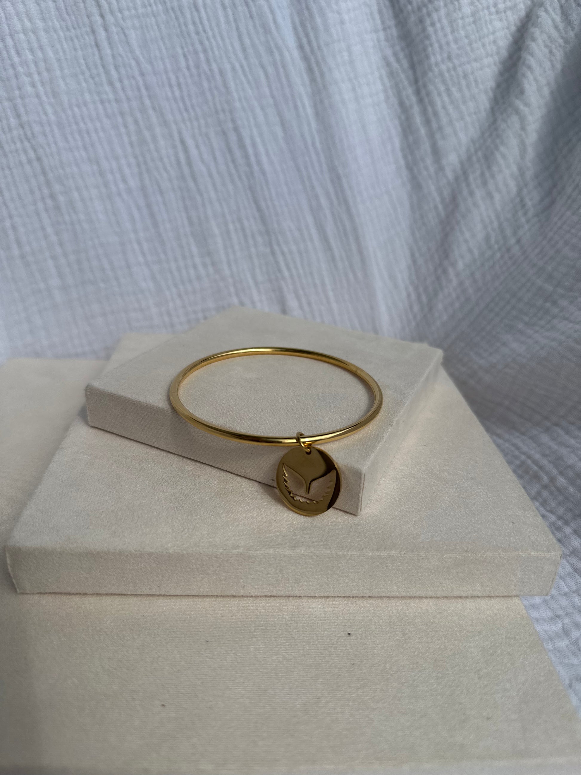 Jonc en acier inoxydable – Élégant et intemporel, il ne ternit pas, ne s’oxyde pas et se porte au quotidien sans s’abîmer. Hypoallergénique et confortable, il s’adapte à tous les styles, seul ou en accumulation.